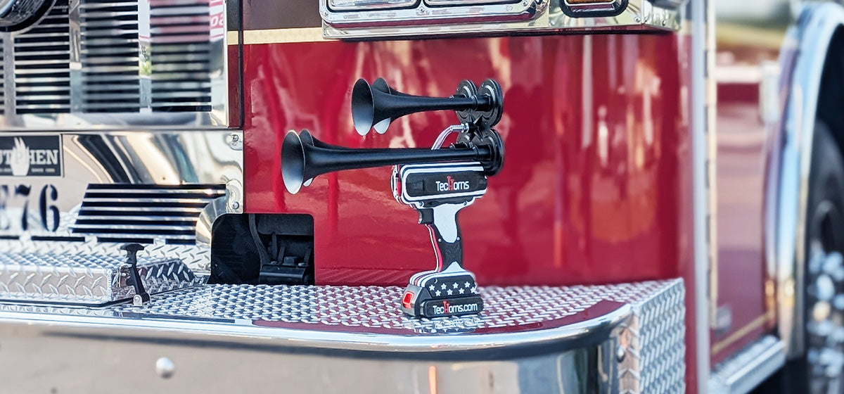 Thin RED Line TecHorn 4-Horn – 130 dB Firefighter Train Horn + Battery | Hot Finish